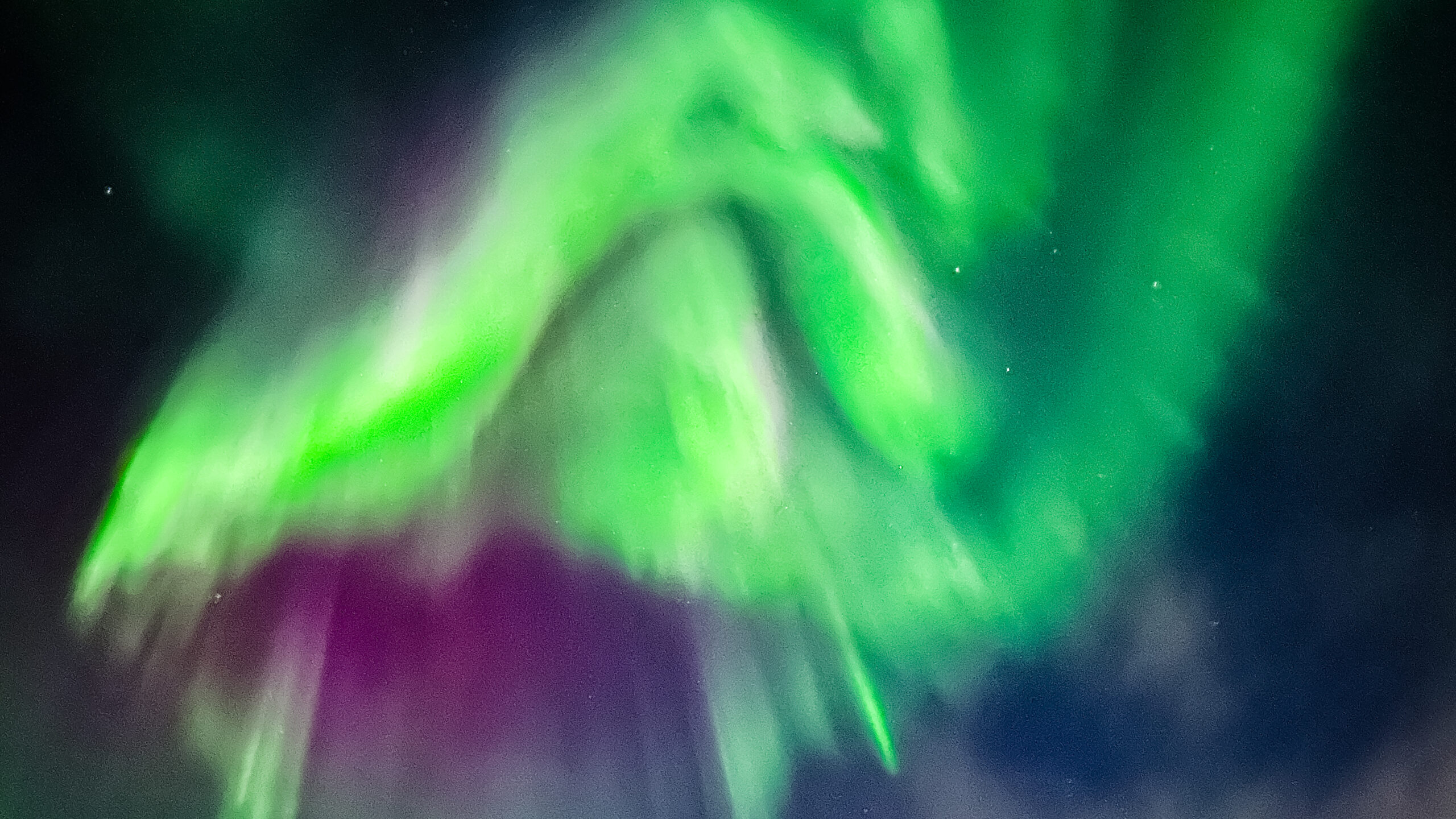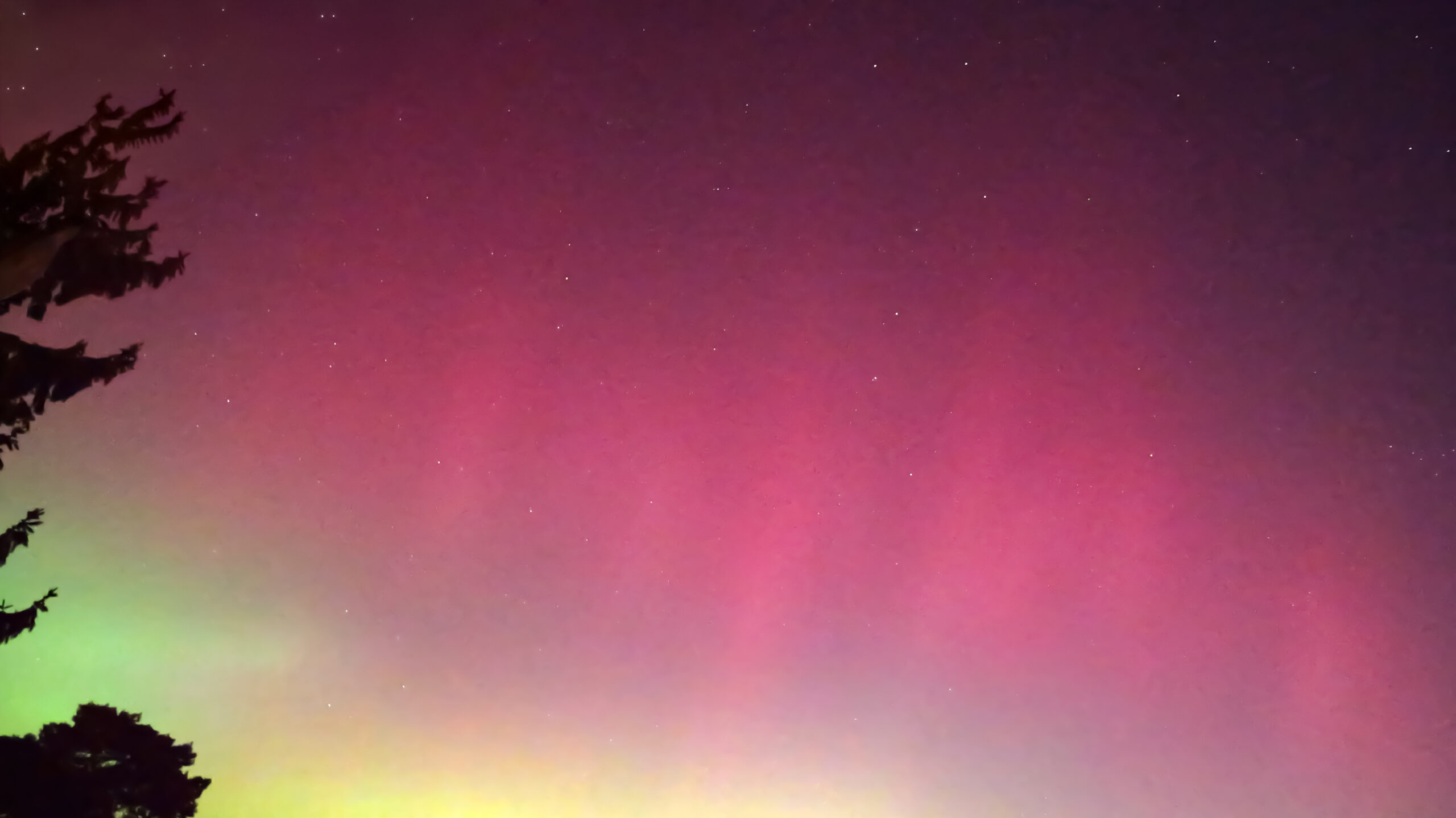 Gestern Abend wurde das Magnetfeld der Erde von einem der heftigsten Sonnenstürme der letzten Monate getroffen: Auf einer Skala von 1 bis 9 für den Kp-Index, der die magnetische Wirkung der Teilchenstrahlung darstellt, wurde ein Wert von 8,67 erreicht. Folge: der Himmel über unserer Region glühte förmlich durch das intensive Polarlicht.