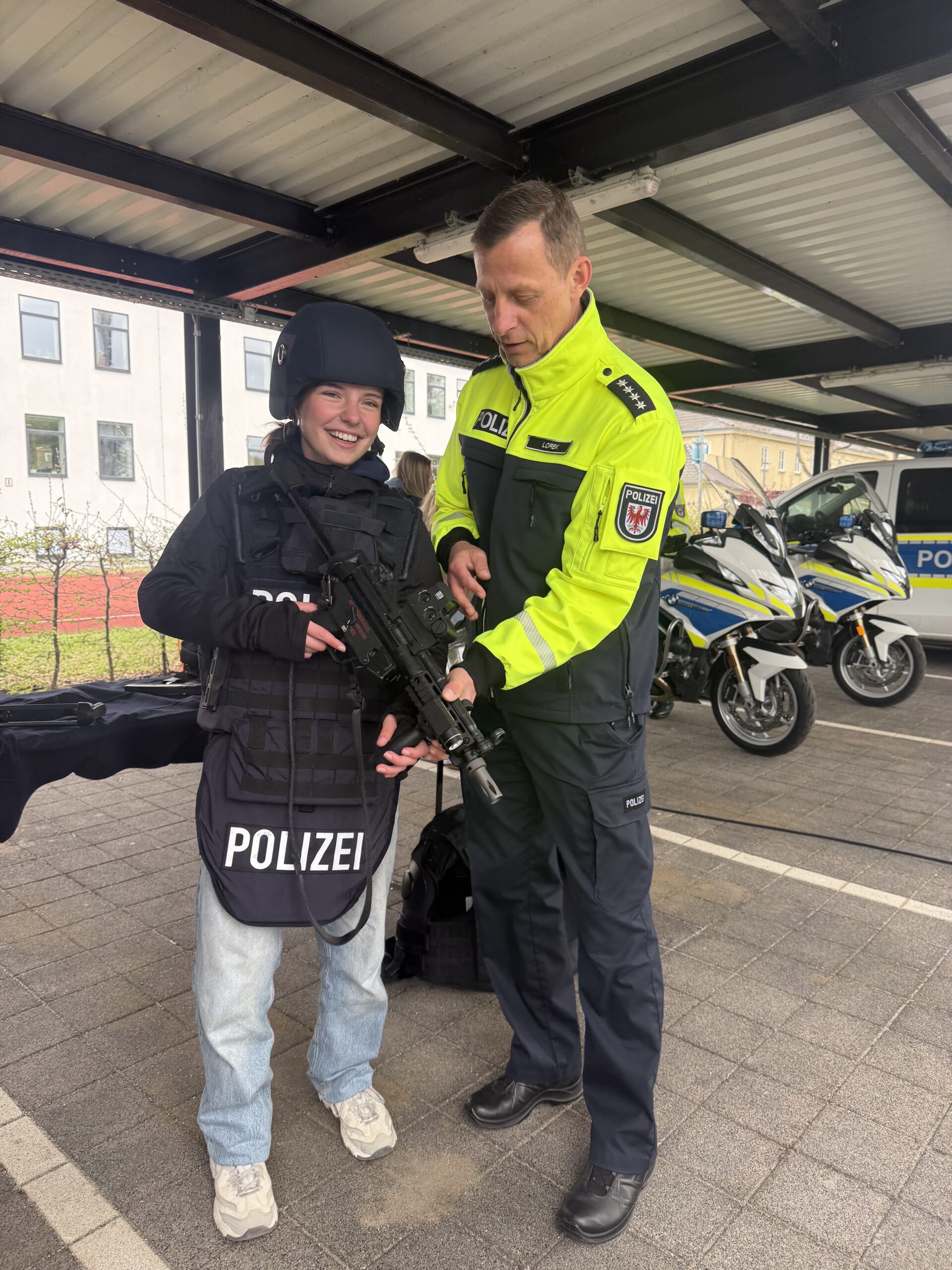 Den Teilnehmenden an allen vier Veranstaltungsorten wurde ein durchstrukturiertes Programm geboten, sodass die Veranstaltungen eine gelungene Abwechslung vom Schulalltag darboten. So erhielten die Schülerinnen und Schüler Einblicke in die Ausstattung der Polizei, vom Fahrzeug bis zur Waffe, alles zum Anfassen und Probieren, immer unter fachkundiger Aufsicht mit Blick auf die gebotenen Sicherheitsvorkehrungen.