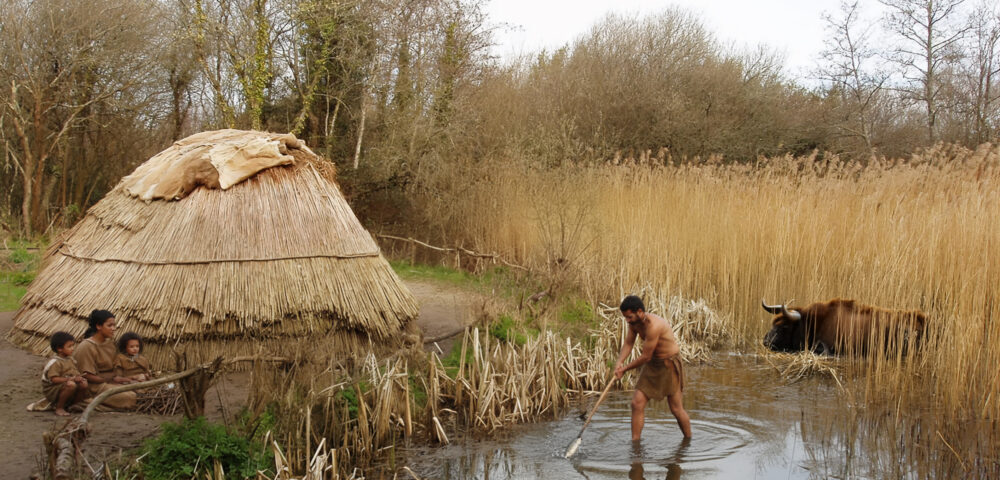 zwischen beiden gibt es verwandtschaftliche Beziehungen. Manchmal gehen sie auch gemeinsam auf die Jagd, sie nutzen dazu Steinbeile, Harpunen aus Holz und geschnitzten Geweihstücken sowie Pfeile mit winzig kleinen Steinspitzen (später wird man dazu „Mikrolithen“ sagen). Kürzlich konnten sie einen Rothirsch und einen Elch erlegen – zur Freude aller, denn Eichhörnchen, Marder und Vögel, die man sonst fängt, wenn kein Großwild in der Gegend ist, sind längst nicht so ergiebig. Mit Steinwerkzeugen und Messerklingen aus Knochen zerlegten die Jäger ihre Beute. Das Geweih des Elchs ging an die südliche Siedlung, das Hirschgeweih an die nördlichen Verwandten (Geweihe dieser mächtigen Tiere gelten als heilig), der Rest wurde nach Personenanzahl aufgeteilt, ein Teil davon mit weiter östlich lebenden Stämmen gegen Feuerstein und Wildgetreide getauscht. Das Fell soll auf einem Holzrahmen aufgespannt und mit Urin gegerbt werden. Die Jäger Rag, Gäl und Zul, die zu denen gehören, die sich bei der Wache gegen Bären und Wölfe abwechseln, ruhen sich jetzt im Holzverschlag am südlichen Ufer aus. Hif ist die Herrin und Hüterin des Feuers. Nur Frauen dürfen Feuer entfachen und Holz nachlegen, denn nur sie sind in der Lage, Leben und Wärme zu spenden. Gleich werden sie gesammelte Haselnüsse rösten und zu den weiter vom Ufer entfernten Strohhütten bringen, wo der Rest der Gruppe lebt. Seitdem in wenigen Jahrzehnten die Temperatur rasant um fünf Grad gestiegen ist (auf zwei Grad mehr als heute), lebt es sich in der Gegend immer angenehmer, sodass Wildgemüse und wildwachsendes Obst reichlich vorhanden sind – nur Jagdtiere wie den Ur und Wildpferde gibt es immer seltener. Seit der Erwärmung hat sich die Lebenserwartung auf 33 Jahre erhöht, die Kindersterblichkeit ist noch immer enorm hoch. Trotzdem: In der Nähe des Flusses lebt es sich ganz gut – wenn nur nicht die Zähne so häufig wehtäten und die vielen Stechmücken Tiere und Menschen nicht so quälten!