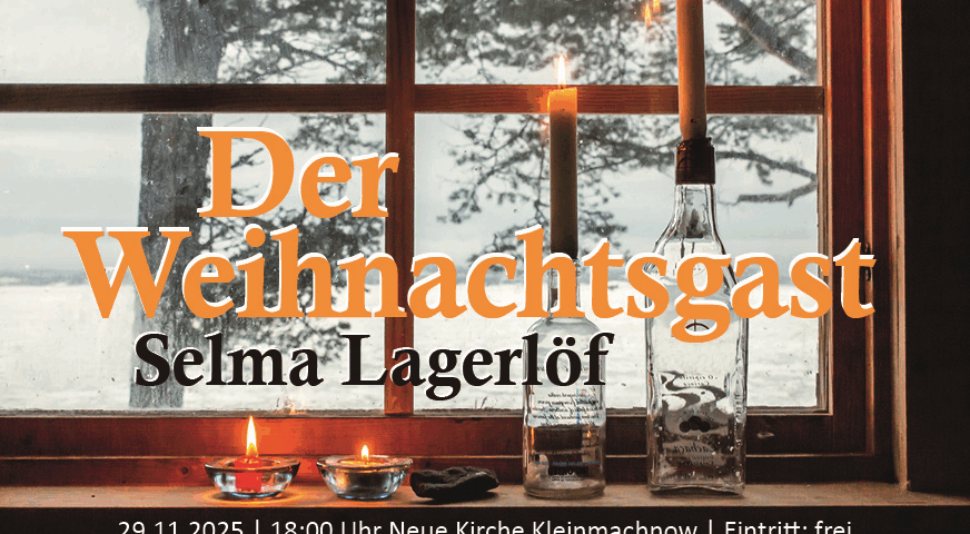 Am 29. November findet ab 18:00 Uhr in der Neuen Kirche Kleinmachnow eine musikalische Lesung „für Menschen von 7 bis 107 Jahren” statt. Das Ensemble Nordklang präsentiert Selma Lagerlöfs „Der Weihnachtsgast“.