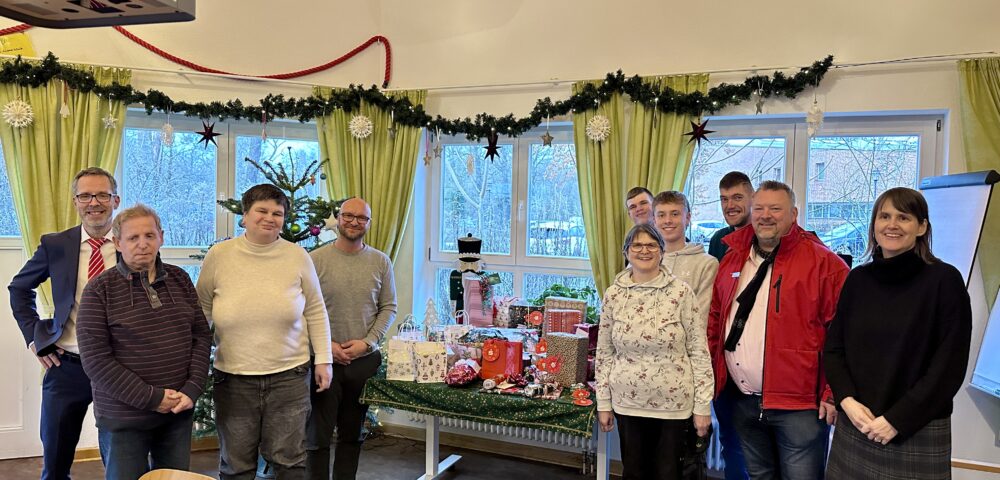 Am 19. Dezember fand die Übergabe von Weihnachtsgeschenken an die Bewohnerinnen und Bewohner des Hauses Kana im Evangelischen Diakonissenhaus Teltow durch die Sparkasse Kleinmachnow in Zusammenarbeit mit MBS-Kunden statt. Ingo Ruppert und Frank Richter von der MBS hatten die Möglichkeit, die Geschenke der Sparkassen-Wunschbaumaktion persönlich an die Wohngruppe im Haus Kana zu übergeben.