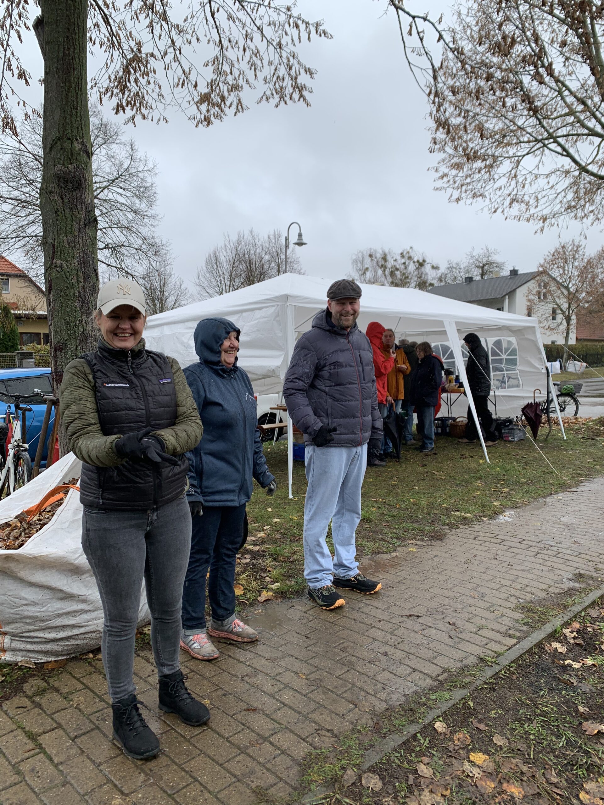 Obwohl man bei diesem Sauwetter nicht einmal einen Hund vor die Tür schicken würde, waren mehr als 40 Helferinnen und Helfer dem Aufruf des 2024 in Teltow gegründeten Vereins „Bäume für die Zukunft“ gefolgt, um den zweiten Tiny Forest in Teltow anzulegen. Mit Schaufeln und Regencapes bewaffnet trotzten sie eisigem Wind und Regen. Auch der frisch gewählte Bürgermeister Andre Freymuth schaute vorbei.