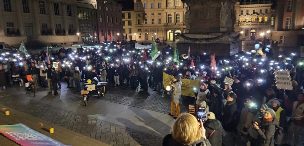 Am 25. November versammelten sich über 1.000 Menschen in Potsdam, um ein klares Zeichen gegen Rechtsextremismus, Hass und Spaltung zu setzen. Anlass ist der Jahrestag des Potsdamer Nazitreffens, bei dem extrem rechte Akteure Abschiebungsfantasien und antidemokratische Pläne diskutierten.