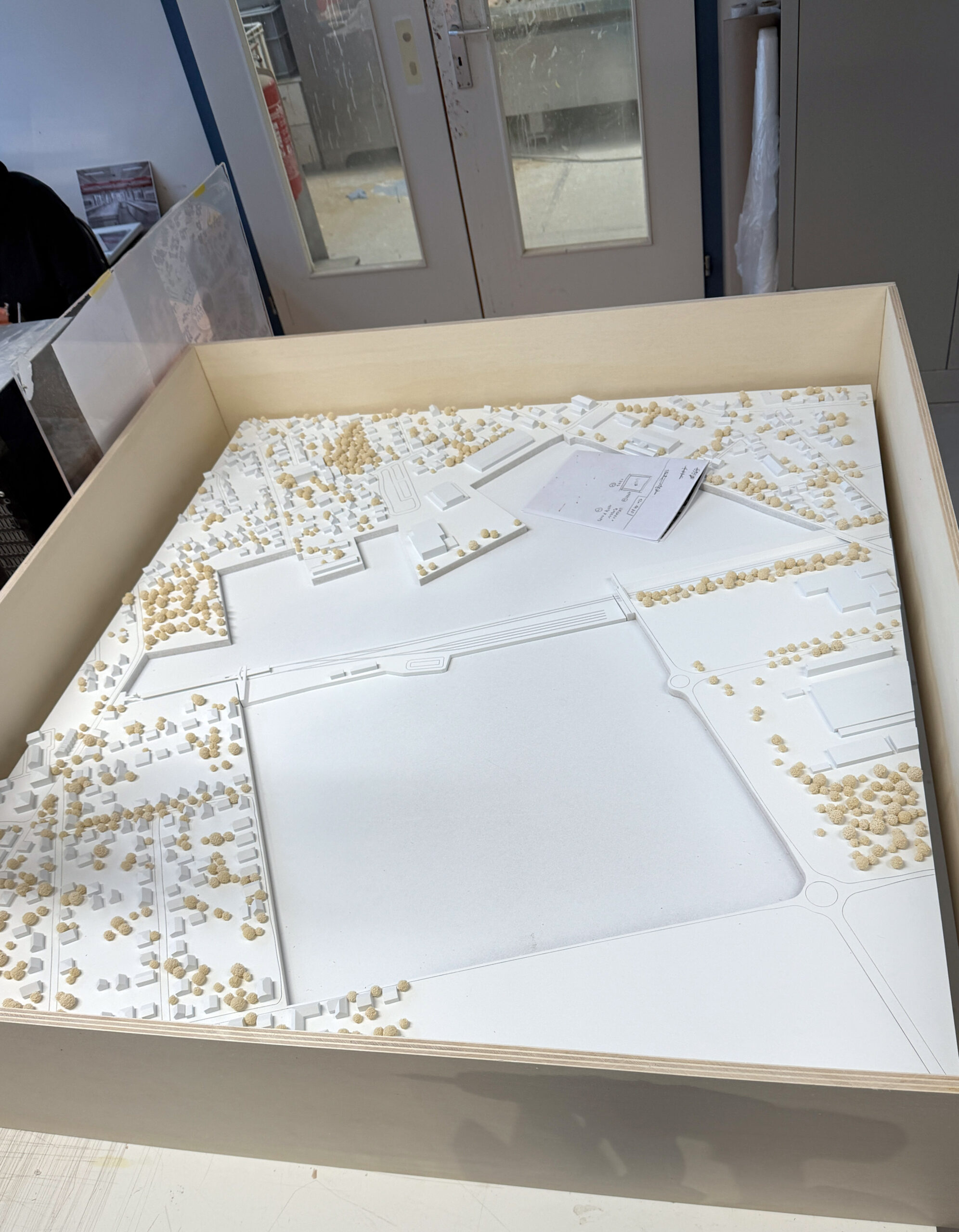 Im nächsten Schritt sind die Teilnehmer dazu aufgerufen, bis zum 6. Mai ein Geländemodell zu erstellen. Dieses soll dem Preisgericht einen dreidimensionalen Eindruck vermitteln. Die Modelle haben Abmessungen von je einem knappen Quadratmeter, da sie exakt in ein bereits feststehendes Umgebungsmodell aus Kunststoff passen müssen. Diese Art Schablone zeigt einen erweiterten Ausschnitt Stahnsdorfs rund um den S-Bahnhof und dessen Umfeld. Vergleichbar mit einem fehlenden Puzzlestück fertigen die teilnehmenden Büros den noch ausstehenden Einsatz. Vom 21. bis 23. Mai können ausschließlich die Stahnsdorferinnen und Stahnsdorfer die Planunterlagen in der Sporthalle des Lindenhof-Hortes (Schulstraße 9) öffentlich einsehen.