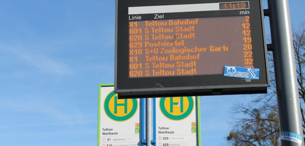 Vor dem Gesundheitszentrum an der Potsdamer Straße werden die beiden Haltestellen erneuert. Die Bauarbeiten dauern vom 10.November bis zum 30.4.2026. Geplant sind zwei neue Wartehäuschen. Außerdem soll zur Verbesserung der Überquerung der Potsdamer Straße eine Mittelinsel errichtet werden.