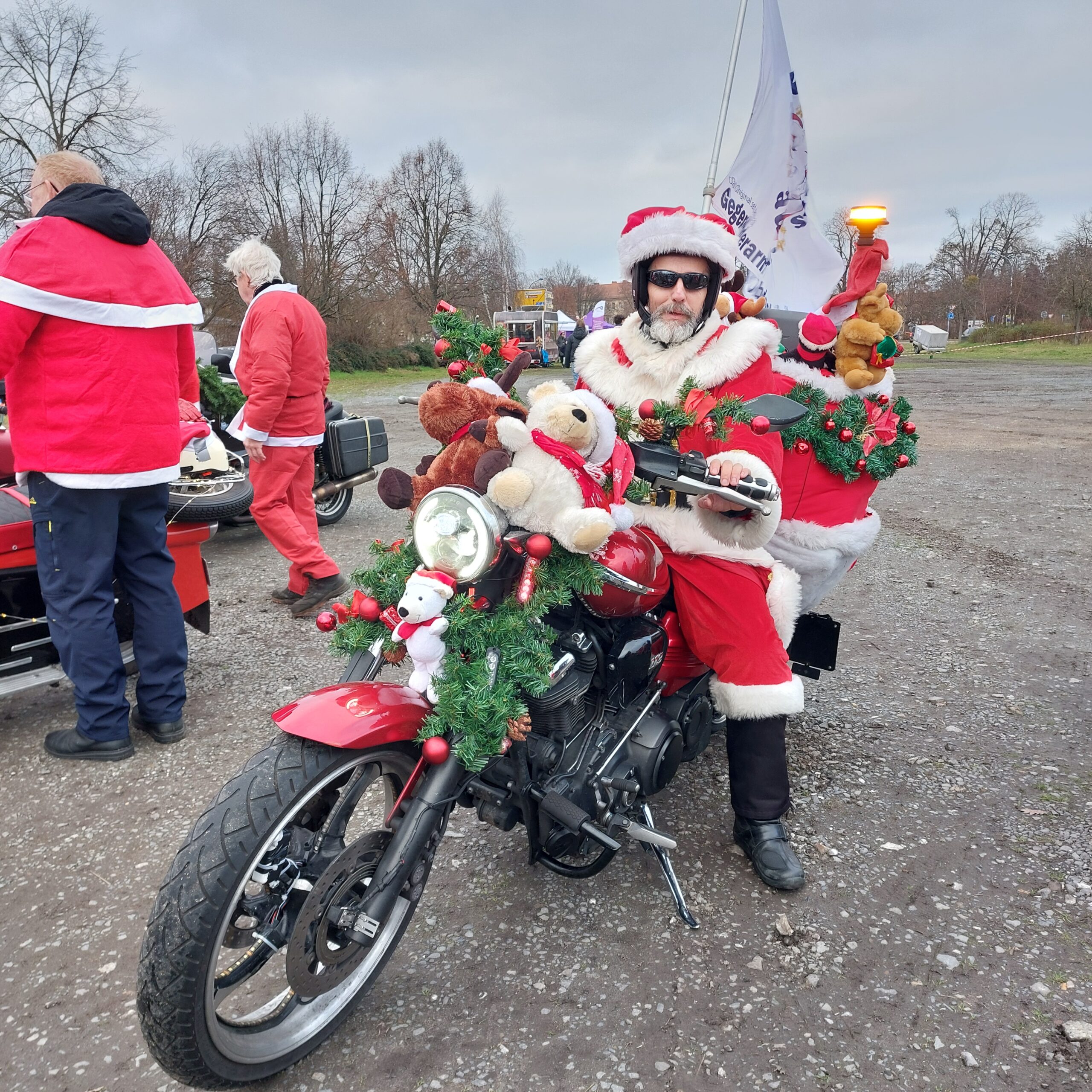Weihnachtsmänner und -frauen fuhren auf blinkenden Mopeds, wie den Marken „Schwalbe“, „Star“ und „Duo“, auf Motorrädern und Motorrollern der Ludwigsfelder Werksproduktion aus den 1950er und 1960er Jahren durch die Stadt, um Vorweihnachtsstimmung durch Ludwigsfelde zu tragen. Begleitet wurden die zwei- und dreirädrigen Gefährte von Traktoren, Trabis und weiteren Young- und Oldtimern. „Besonderes Highlight war der Luckenwalder Weihnachtsflitzer. Diese Beteiligung zeigt, dass unser Event inzwischen überregionale Strahlkraft hat. Denn auch einige Motorradfahrer kommen u. a. aus Jüterbog, Zossen, Lichterfelde und Steglitz.“ so Frank Deetz, Mitinitiator und Organisator des Events.